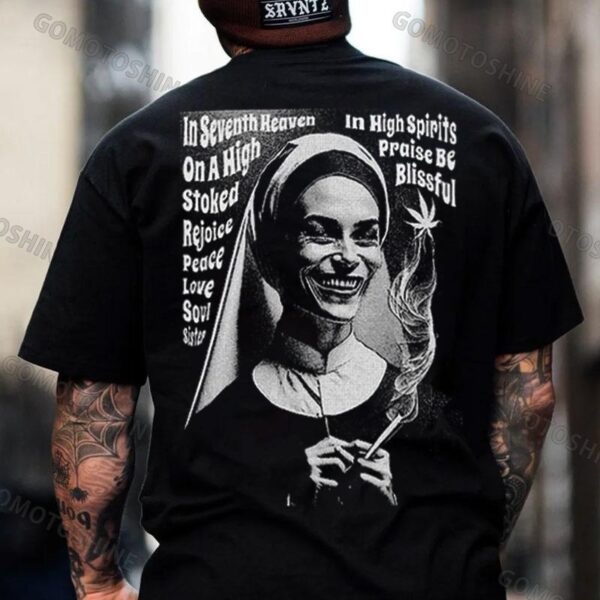 Are you ready to stand out with a touch of eccentricity and style? Imagine yourself in the spotlight, turning heads with the In Seventh Heaven Smoking Nun Print Men’s T-shirt. This unique design blends artistry with a rebellious spirit, perfect for those who dare to be different. The smoking nun print adds a mysterious allure to your outfit, sparking conversations and curiosity wherever you go. Whether you’re heading to a casual hangout or an artistic event, this shirt will make you feel like a trendsetter in your own right.