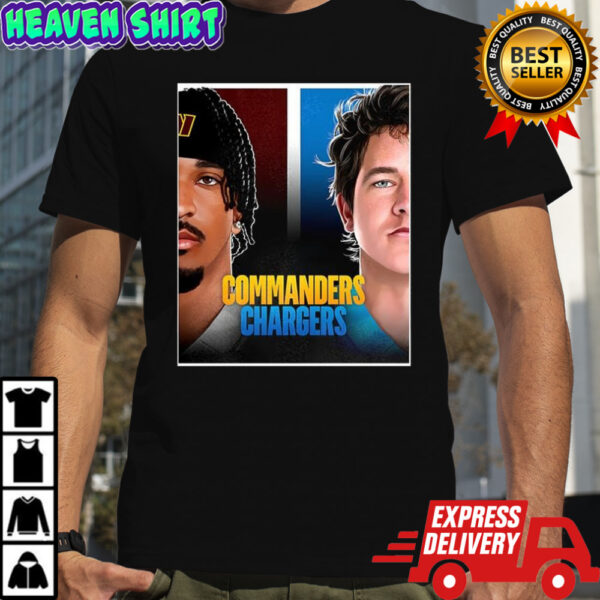 Jayden Daniels Washington Commanders vs Justin Herbert Los Angeles Chargers NFL 2025 shirt, classic, ladies, long sleeved, hoodie and sweatshirt