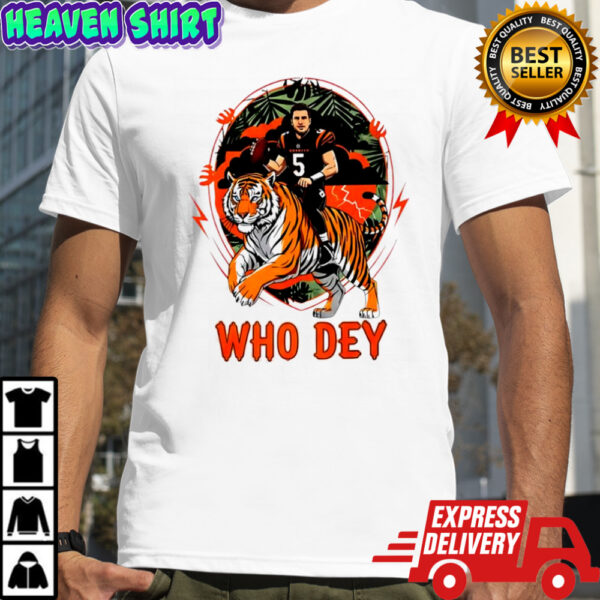 Are you ready to roar with pride for the Cincinnati Bengals? Introducing the Joe Flacco Cincinnati Bengals Flacco in the Jungle who Dey shirt, a must-have for every true fan of the team. This shirt is not just a piece of clothing; it’s a statement of unwavering support for the Bengals and their quest for victory. Featuring a bold design that showcases Joe Flacco in his element, this shirt captures the essence of the jungle where the Bengals reign supreme. Made from premium quality fabric, it offers comfort beyond compare, ensuring you stay cool and stylish whether you’re at the game or cheering from home.