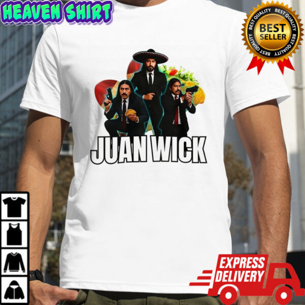 Get ready to spice up your wardrobe with the ultimate conversation starter – the Juan Wick John Wick Taco Sombrero parody shirt! This shirt is not just a piece of clothing; it’s a statement, a fusion of two iconic characters in a hilarious and unique design. Imagine the head-turns and smiles you’ll get when you rock this tee. The vibrant colors and playful graphics bring together the suave John Wick and the Mexican flair of Juan Wick in a taco sombrero twist that’s bound to make you the center of attention wherever you go. It’s a must-have for taco lovers, action movie fans, and anyone who appreciates a good laugh.