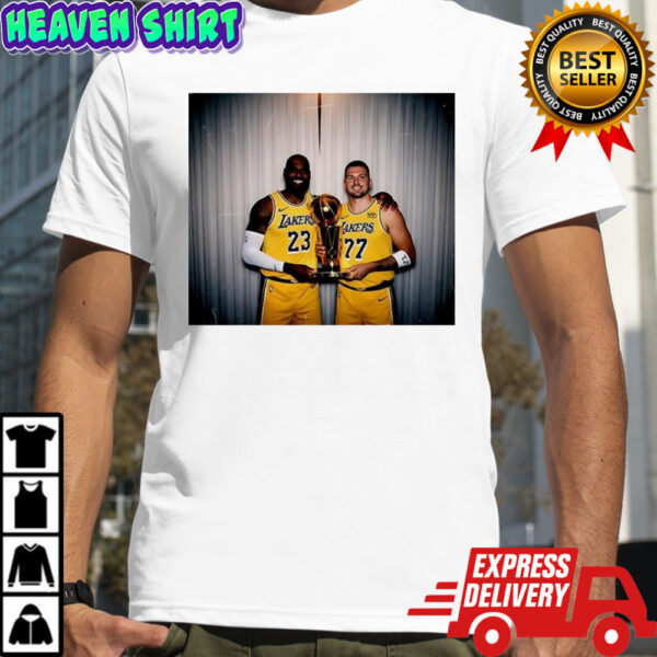 Ready to upgrade your wardrobe with a touch of basketball greatness? Embrace the spirit of champions with the LeBron James and Luka Dončić Trophy June 2026 photo shirt today. Join fellow fans in celebrating the triumphs of these legendary players and stand out from the crowd with this unique and stylish piece. Elevate your game day attire and let your loyalty shine through with every wear. Order now and bring home a piece of basketball history!