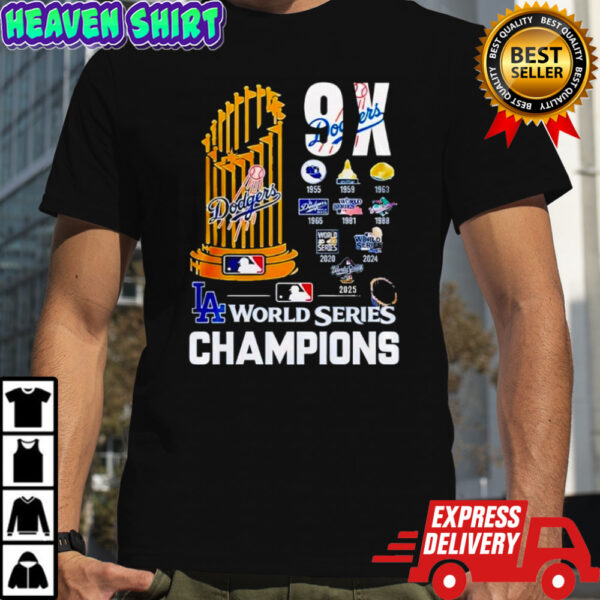 Los Angeles Dodgers 9 x World Series Champions T-Shirt, Classic, Women’s, Long Sleeved, Sweatshirt and Hoodie