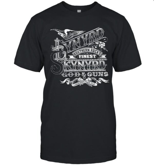 Ready to channel your inner rock aficionado and pay homage to the pioneers of Southern rock? Don this Lynyrd Skynyrd Southern Rock’s Finest God And Guns T-Shirt to make a bold statement wherever you go. Embrace the timeless allure of Lynyrd Skynyrd’s music and let your style reflect the rebellious essence of rock ‘n’ roll. Elevate your wardrobe with this iconic piece and show the world your appreciation for the unparalleled sound and spirit of Southern rock. Get your hands on this exclusive t-shirt today and let your passion for music shine through your fashion choices!
