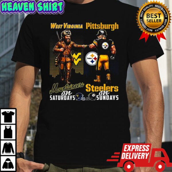 Get ready to show your team spirit in style with the Mascot West Virginia Mountaineers on Saturdays and Pittsburgh Steelers on Sundays shirt! This unique shirt is the ultimate fan gear for those who bleed blue and gold on Saturdays and black and gold on Sundays. Whether you’re cheering for the Mountaineers or the Steelers, this shirt lets you represent both teams with pride and passion. Crafted from premium-quality fabric, this shirt is as comfortable as it is eye-catching, making it perfect for game days, sports bars, or casual hangouts with fellow fans. Stand out in the crowd and let your fandom shine with this versatile and trendy shirt that celebrates your love for both teams in a stylish way.