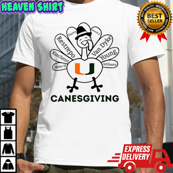 Get ready to show your support for the Miami Hurricanes in a unique and meaningful way this Thanksgiving with our exclusive Miami Hurricanes turkey Canesgiving Thanksgiving with heroes shirt. Embrace the spirit of gratitude and team pride with this one-of-a-kind shirt that pays homage to the heroes of the gridiron. Crafted with the finest materials, this shirt is not just apparel; it’s a statement of your unwavering dedication to the Hurricanes. The vibrant design captures the essence of Thanksgiving and the thrill of game day, making it a must-have for every passionate fan.
