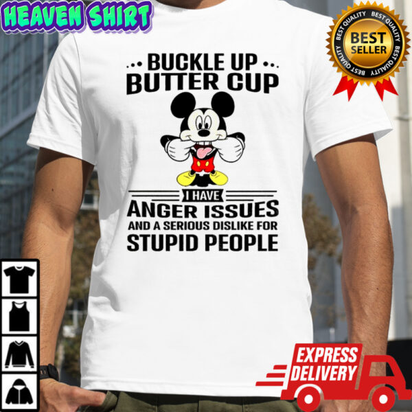 Mickey buckle up buttercup I have anger issues and a serious dislike for stupid people shirt