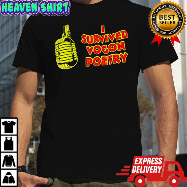But this shirt is more than just a nod to a classic scene. It’s a statement of resilience, a badge of honor for enduring the worst poetry in the universe! When you wear this Microphone i survived vogon poetry shirt, you’re not just donning fabric; you’re embracing the spirit of adventure, wit, and camaraderie that fans of the series hold dear. Share your love for Douglas Adams’ masterpiece with fellow hitchhikers and let this shirt be a symbol of your connection to a galaxy of like-minded individuals. So, why wait? Add this unique piece to your collection and let your geek flag fly high!