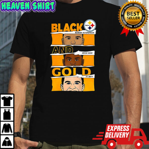 Minkah Fitzpatrick Devin Bush and TJ Watt Pittsburgh Steelers football Black and Gold shirt