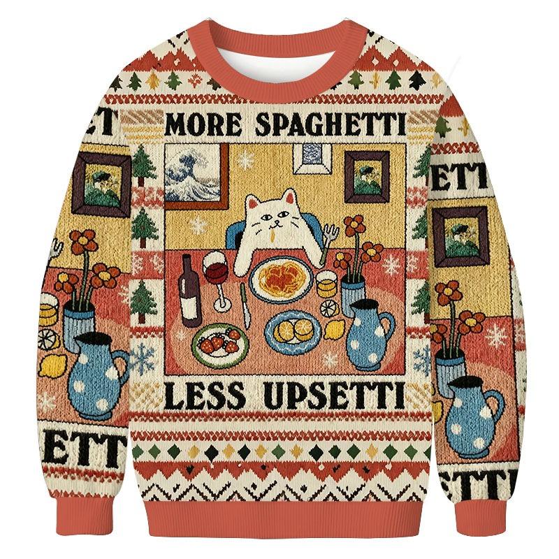 More Spaghetti Less Upsetti Christmas Ugly Sweatshirt, hoodie, sweater, longsleeve and ladies t-shirt