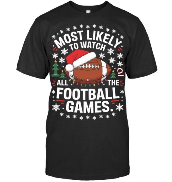 Most Likely To Watch All The Football Games Christmas Family T Shirt, hoodie, sweater, longsleeve and ladies t-shirt