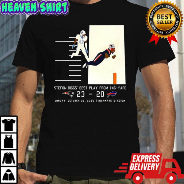 It was a moment frozen in time, a play that defined greatness on the field – the New England Patriots Win Buffalo Bills NFL 2025 Stefon Diggs best play form 146 yeard shirt commemorates this iconic event. Picture this: Stefon Diggs, with unmatched agility and skill, making a jaw-dropping 146-yard play that left fans in awe. This shirt captures the essence of that historic game, celebrating the New England Patriots’ victory over the Buffalo Bills in the NFL 2025 season. Crafted with premium quality materials, it offers comfort and style for fans who want to relive that unforgettable moment.