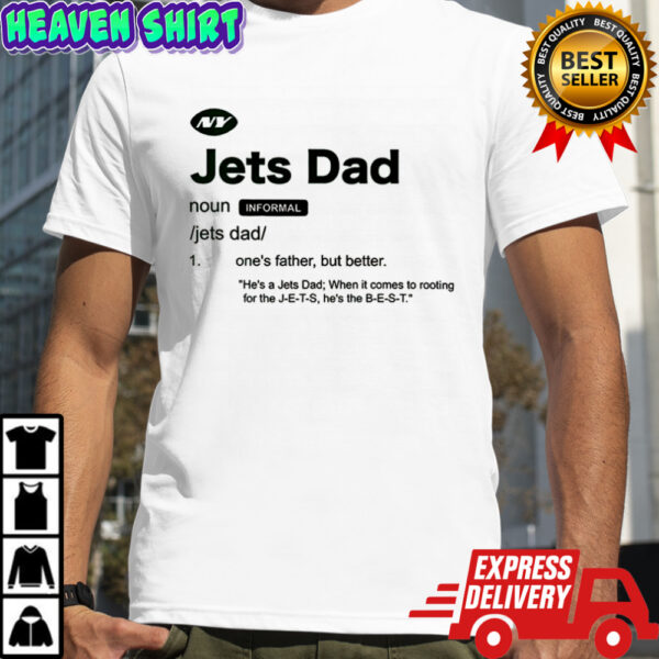Looking for the perfect gift for the die-hard New York Jets fan in your life? Look no further than this unique New York Jets Dad definition shirt. Crafted with the softest, most comfortable fabric, this shirt is more than just apparel; it’s a declaration of fandom. The front proudly displays the “Dad Definition,” celebrating the role of a father who embodies the true spirit of a Jets supporter – passionate, dedicated, and always there to cheer on the team. Whether it’s game day or a casual outing, this shirt is a statement piece that exudes team pride and family love.