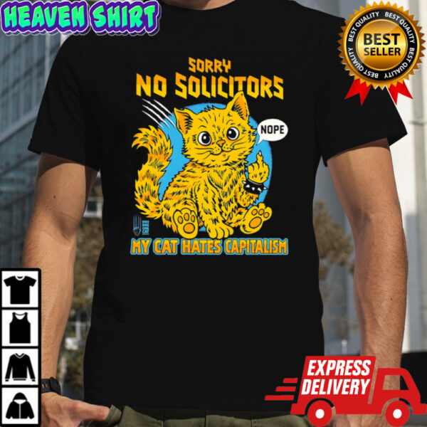 Official Sorry No Solicitors My Cat Hates Capitalism Nope shirt, Classic, Women’s, Long Sleeved, Sweatshirt and Hoodie