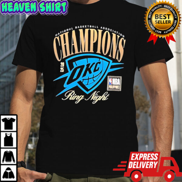 Don’t miss out on the chance to own a piece of basketball history! Elevate your fan game with the OKC Oklahoma City Thunder National Basketball Association Champions 2025 Ring Night shirt and stand out from the crowd. Wear it proudly on game days, victory celebrations, or simply as a statement of your unwavering support for the Thunder. Let this shirt be a reminder of the team’s triumphs and the moments that unite us all as fans. Get yours now and let the world know that you are a true Thunder supporter!