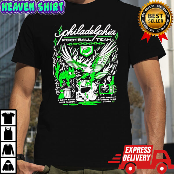 With its vibrant colors and eye-catching design, the Philadelphia Eagles I Don’t Even Like Football I Just Want My Neighbors To Be Happy Shirt is sure to make you stand out in the crowd. Crafted from high-quality materials, this shirt is not only stylish but also comfortable to wear all day long. Be the beacon of positivity in your community and let your neighbors know that you care about their happiness. Spread the love for your team and the joy of togetherness with this one-of-a-kind shirt. So go ahead, grab yours today and be the reason behind those contagious smiles in your neighborhood!