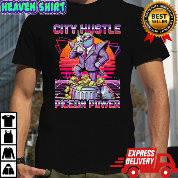Pigeon Power City Hustle Funny Retro 80s Synthwave shirt, Classic, Women’s, Long Sleeved, Sweatshirt and Hoodie