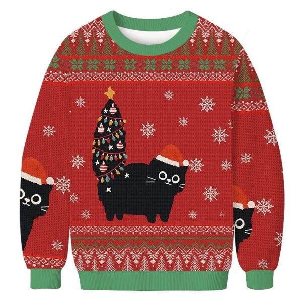 Dive into this holiday season with a touch of whimsy and feline charm with our Purr-fectly Festive Christmas Ugly Sweatshirt. Picture yourself cozying up by the fireplace or sipping hot cocoa with friends and family in this jovial piece that combines the spirit of Christmas with a delightful dose of quirkiness. The design features a playful mix of festive elements like twinkling lights, snowflakes, and of course, adorable cats in Santa hats, all set against a background of vibrant red and green hues. This sweatshirt is not just an article of clothing; it’s a statement piece that radiates joy and merriment, perfect for spreading holiday cheer wherever you go.