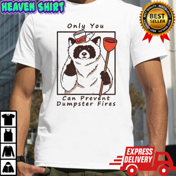 Are you ready to make a statement with your wardrobe while championing a crucial cause? Introducing our Raccoon fire fighting only you can prevent dumpster fires shirt! This unique and eye-catching shirt not only adds a touch of fun to your outfit but also spreads an important message about fire prevention. Featuring a bold graphic of a determined raccoon ready to tackle any dumpster fire, this shirt is a conversation starter and a reminder that we all play a role in keeping our surroundings safe. Made from high-quality, soft cotton, it’s as comfortable as it is impactful.