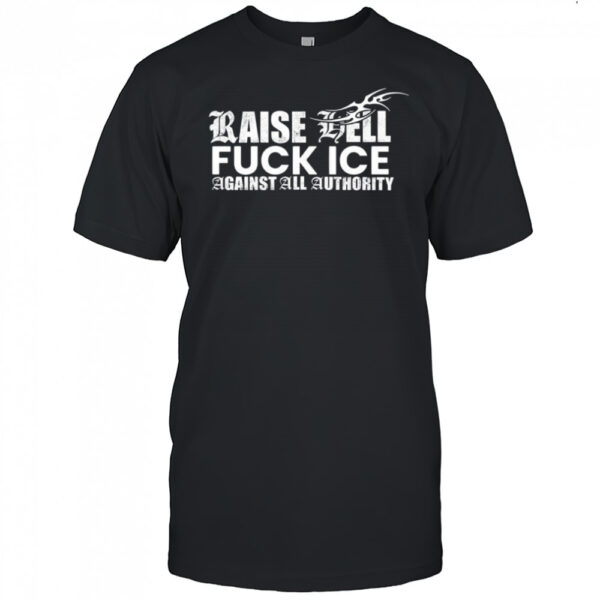 Embrace your inner rebel and join the movement with our Raise ell fuck ice against all authority shirt! Take a stand against conformity and show the world where you stand. Whether you wear it to a protest, a social gathering, or simply out and about, this shirt will speak volumes on your behalf. Stand out from the crowd and let your outfit reflect your values. Don’t just wear a shirt; wear a statement. Get yours today and let your clothing be a testament to your beliefs. Make a bold choice, make a difference – wear your defiance proudly!