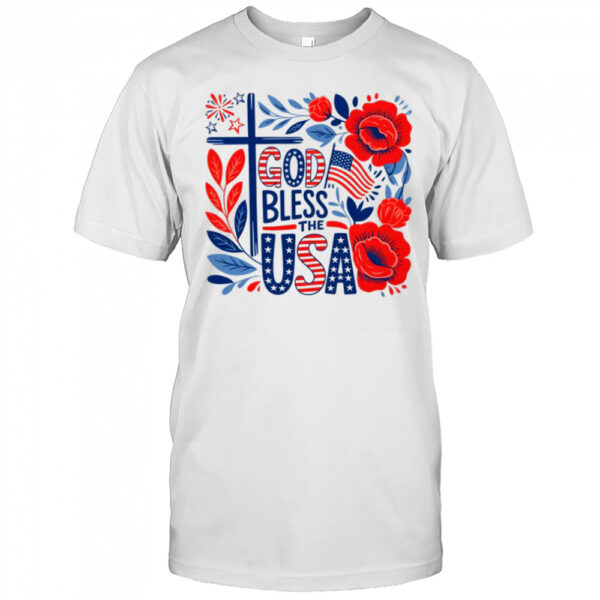 Retro Boho Floral God Bless The USA Christian 4th Of July shirt, hoodie, sweater, longsleeve and ladies t-shirt