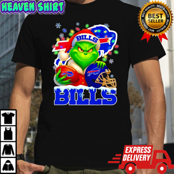 Santa Christmas Grinch Buffalo Bills holding helmet football shirt