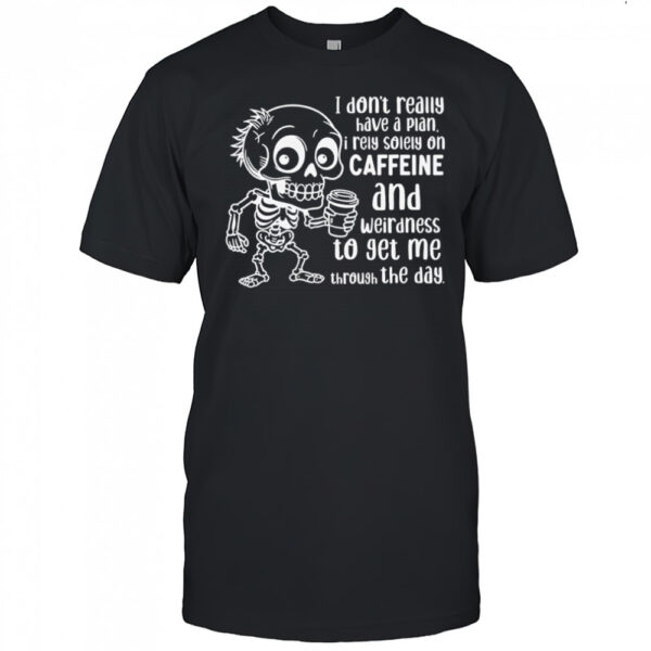 Skeleton I don’t really have a plan i rely solely on caffeine and weirdness to get me through the day shirt, hoodie, sweater, longsleeve and ladies t-shirt
