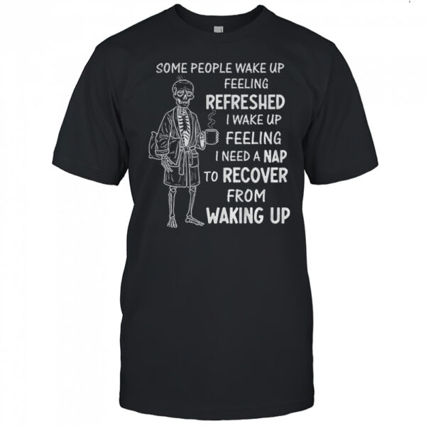 Skeleton some people wake up feeling refreshed I wake up feeling I need a nap to recover from waking up shirt, hoodie, sweater, longsleeve and ladies t-shirt