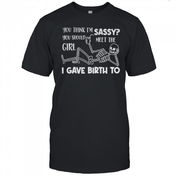 Skeleton you think I’m sassy you should meet the girl I gave birth to shirt, hoodie, sweater, longsleeve and ladies t-shirt