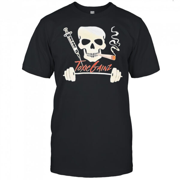 Skull smoking toxic gainz gym shirt, hoodie, sweater, longsleeve and ladies t-shirt