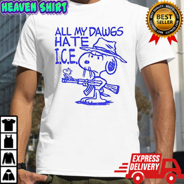 Join the movement and wear your beliefs proudly with the Snoopy all my dawgs Hate ICE shirt. Take a stand against injustice and show solidarity with those affected. By wearing this shirt, you not only make a fashion statement but also contribute to raising awareness about important social issues. Don’t miss the opportunity to be part of a community that advocates for positive change. Get your hands on this unique piece today and let your outfit speak volumes for what you believe in. Embrace your individuality and spread positivity with every wear. Make a difference, one outfit at a time!