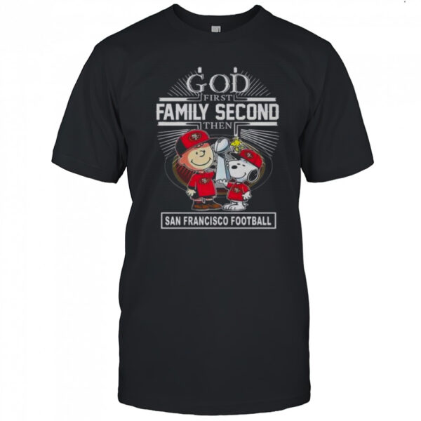 Snoopy And Charlie Brown God First Family Second Then San Francisco 49ers Football Christian T-Shirt, hoodie, sweater, longsleeve and ladies t-shirt