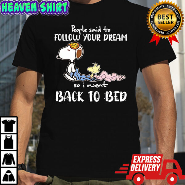 Snoopy and Woodstock people said to follow your dream so i went back to bed shirt