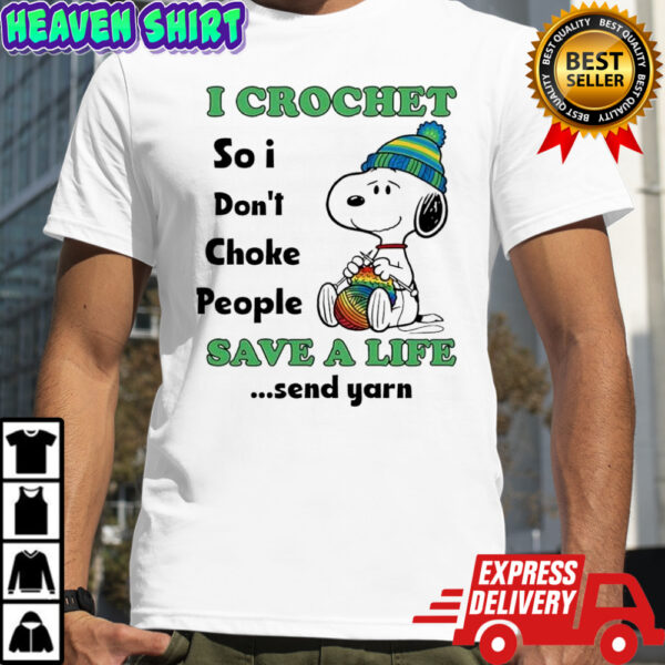Crafting with purpose and style just got a whole lot trendier with the Snoopy i crochet so i don’t choke people save a life send yarn shirt. This unique shirt not only showcases your love for crochet but also spreads an important message in a fun and quirky way. The design featuring Snoopy is not just adorable; it’s a statement piece that tells the world about your passion for yarn and the therapeutic art of crochet. Imagine wearing this shirt and instantly connecting with fellow crafters who share your enthusiasm for creating beautiful masterpieces while bringing a touch of humor to your everyday wardrobe.