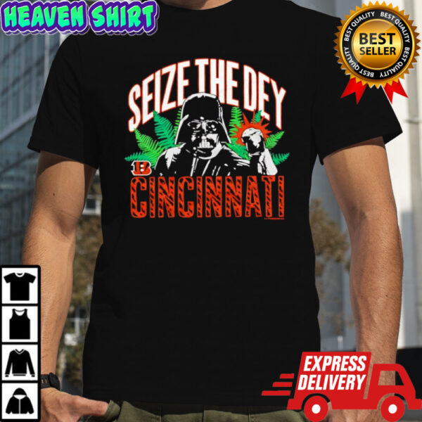 Let your fandom shine with the **Star Wars x Cincinnati Bengals Darth Vader seize the dey shirt**. Whether you’re cheering from the stands or lounging at home, this shirt exudes a blend of power, loyalty, and unwavering support for your team. Stand out in the crowd and showcase your dual allegiance with this unique piece that captures the essence of both universes. Elevate your fan gear collection and make a bold statement that resonates with your love for both Star Wars and the Cincinnati Bengals. Don’t miss out on this exclusive collaboration – seize the dey, seize the moment, and seize this shirt now to channel the force of victory wherever you go!