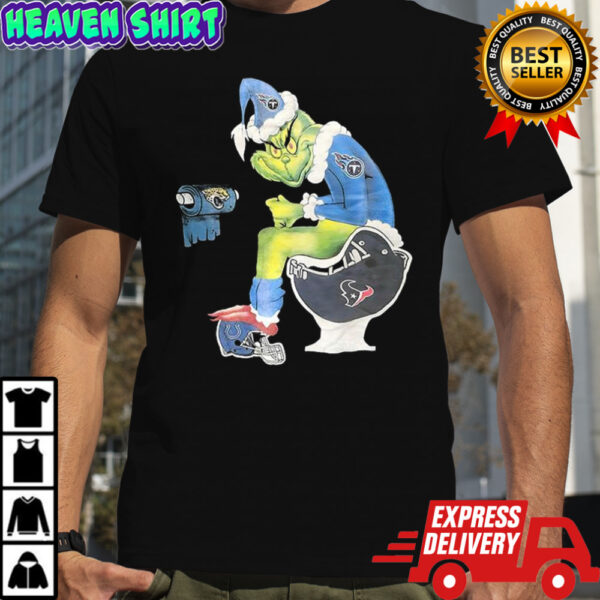 Tennessee Titans Grinch sits on Houston Texans helmet Indianapolis Colts and Jacksonville Jaguars shirt, Classic, Women’s, Long Sleeved, Sweatshirt and Hoodie