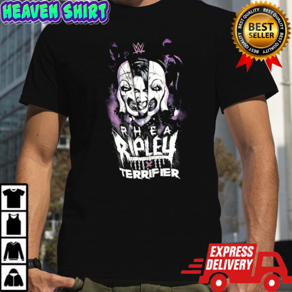 Unleash your inner warrior with the Terrifier Rhea Ripley shirt! Designed for those who dare to stand out, this shirt embodies the fierce spirit of Rhea Ripley herself. Crafted from high-quality, breathable fabric, this shirt ensures both comfort and style as you conquer your day. The striking design featuring Rhea Ripley’s iconic imagery will make you feel empowered and ready to take on any challenge that comes your way. Whether you’re hitting the gym, hanging out with friends, or attending a live wrestling event, this shirt is a statement piece that exudes strength and confidence.
