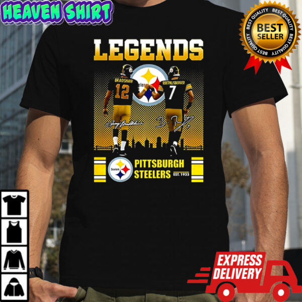 Terry Bradshaw and Ben Roethlisberger Pittsburgh Steelers football legends signature shirt