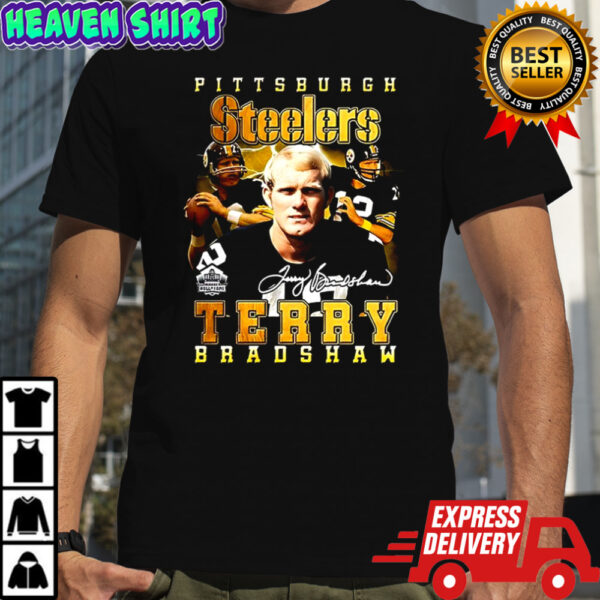 Unleash your inner Steelers fan with the legendary Terry Bradshaw Pittsburgh Steelers football signature shirt. This iconic shirt encapsulates the essence of Steelers pride and football history. Crafted with premium quality materials, each shirt proudly displays Terry Bradshaw’s signature, symbolizing his unparalleled legacy in the NFL. Feel the rush of excitement as you don this shirt, immersing yourself in the spirit of the Steelers’ glory days. Whether you’re cheering from the stands or watching from home, this shirt is a must-have for every die-hard Steelers supporter.