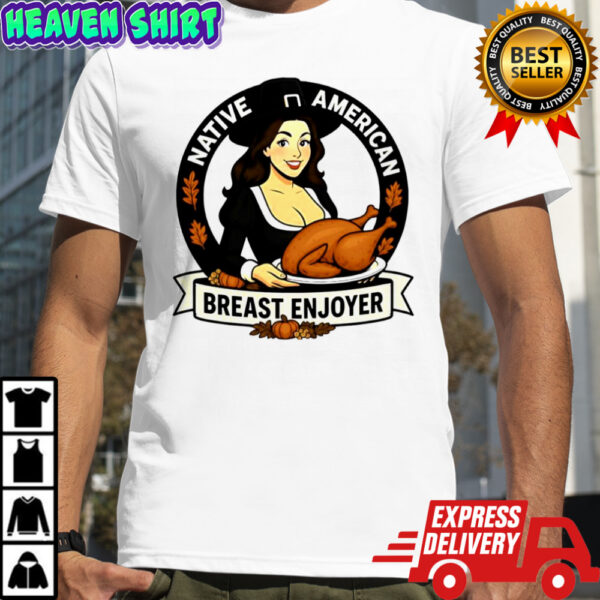 Embrace the spirit of Thanksgiving with our Thanksgiving Day Native American Breast Enjoyer shirt, a unique and meaningful piece that celebrates the essence of gratitude and unity. This eye-catching shirt not only honors the rich heritage of Native American culture but also serves as a powerful reminder of the importance of coming together to appreciate our blessings. The intricate design captures the essence of Thanksgiving, reminding us to be thankful for the abundance in our lives. Crafted with care and attention to detail, this shirt is a symbol of respect and acknowledgment of the traditions that enrich our history.