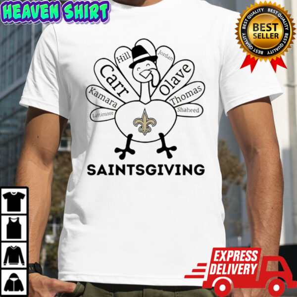 Get ready to elevate your Thanksgiving celebrations with the Thanksgiving with New Orleans Saints Heroes shirt. This exclusive shirt is a blend of style and spirit that pays homage to the iconic New Orleans Saints. Crafted with premium quality fabric, this shirt offers ultimate comfort while showcasing your love for the team. The design features bold colors and intricate details that capture the essence of Thanksgiving and the heroic spirit of the Saints’ players. Whether you’re attending a festive gathering or watching the game, this shirt is sure to make you stand out and feel connected to your favorite team.