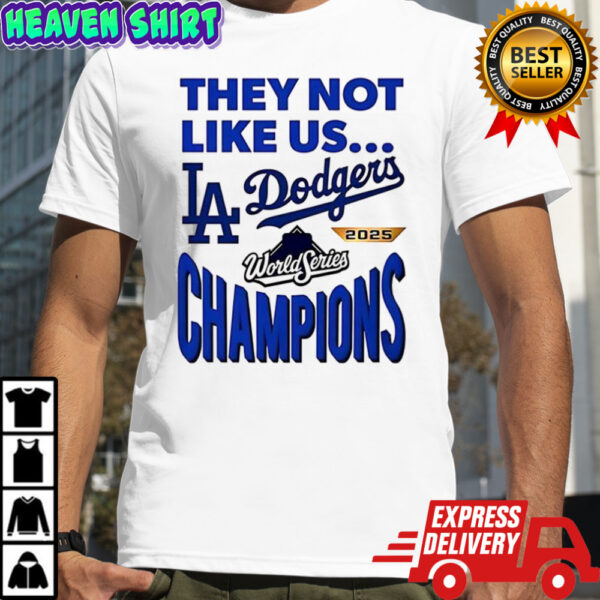 Are you ready to showcase your team pride in style? Introducing the They not like us Los Angeles Dodgers 2025 World Series Champions shirt! This exclusive piece is not just a shirt; it’s a statement of victory and unity. Imagine the thrill of celebrating your team’s triumph every time you wear this shirt. The bold design and vibrant colors will make you stand out in any crowd, instantly connecting you with fellow Dodgers fans. Crafted with premium quality materials, this shirt ensures comfort all day long, whether you’re at the ballpark, hanging out with friends, or running errands. It’s more than apparel; it’s a symbol of unwavering support for your favorite team.