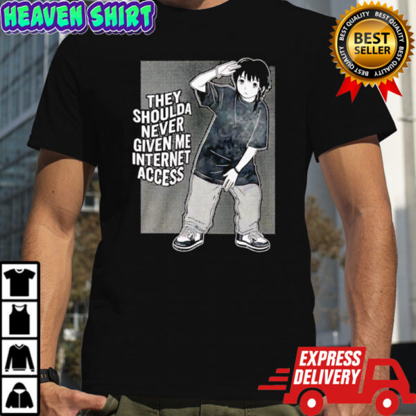 Join the rebellion and make a statement with the They shoulda never given me internet access shirt. Stand out from the crowd and let your personality shine through this eye-catching design. Perfect for casual outings or cozy nights in, this shirt is a must-have for all internet enthusiasts. Embrace your online persona proudly and let the world know that you are not afraid to push the boundaries. Get your hands on this shirt today and show everyone that you are unapologetically yourself. Embrace the mischief, celebrate the chaos, and wear your digital freedom with pride. Order now and let your style speak volumes!
