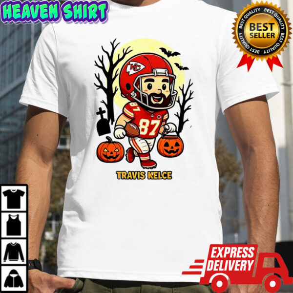 Get ready to show off your team spirit and Halloween vibes with the Travis Kelce Kansas City Chiefs football Jack-o’-latern Halloween shirt! This unique shirt combines your love for the Kansas City Chiefs and the spooky season in one eye-catching design. Featuring the iconic Travis Kelce playing football alongside a festive Jack-o’-lantern, this shirt is a must-have for any die-hard Chiefs fan looking to stand out during Halloween celebrations. The high-quality fabric ensures comfort and durability, allowing you to wear your team pride with style all season long.