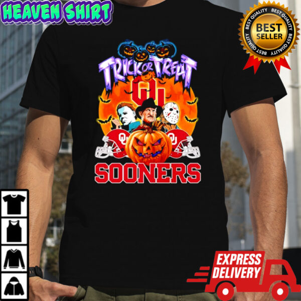 Trick or treat Oklahoma Sooners horror character shirt, hoodie, sweater, longsleeve and ladies t-shirt