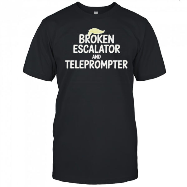 Trump hair broken escalator and teleprompter shirt