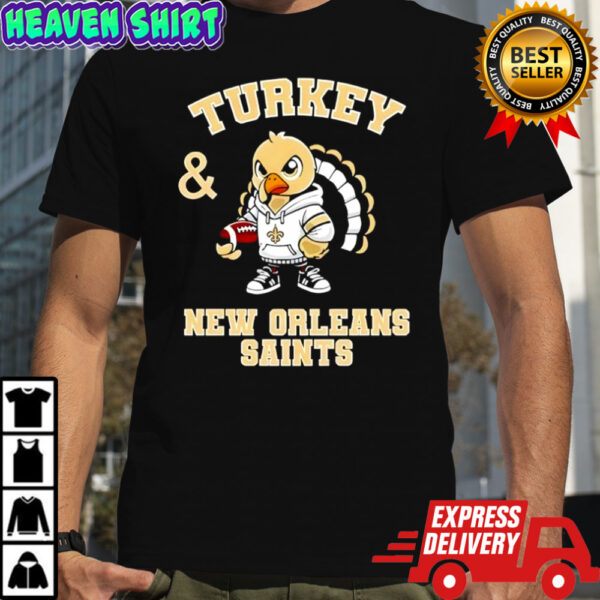 Stand out from the crowd and let your team pride shine with the Turkey & New Orleans Saints Thanksgiving shirt! Whether you’re celebrating the holiday at home with loved ones or cheering for your favorite team at the stadium, this shirt is the perfect choice. Donning this eye-catching shirt not only shows your support for the New Orleans Saints but also adds a fun and festive twist to your Thanksgiving ensemble. Don’t miss out on the opportunity to blend football fandom with holiday cheer – grab your shirt today and elevate your game day experience to a whole new level!