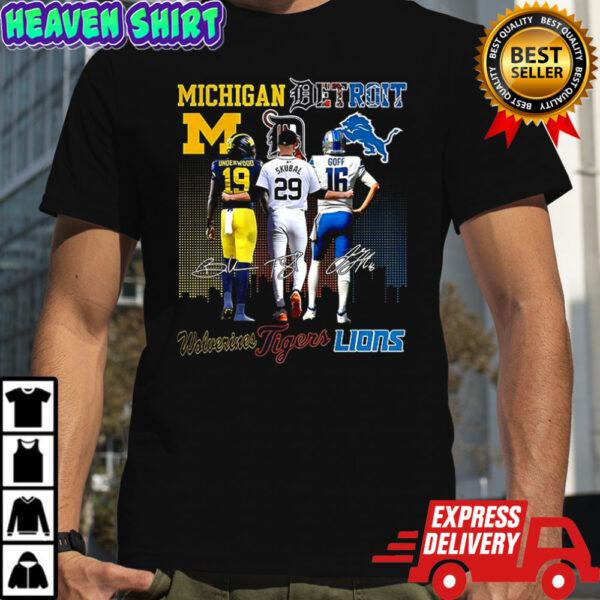Looking to show off your love for Michigan sports icons in style? Look no further than the Underwood Michigan Wolverines Skubal Detroit Tigers Goff Detroit Lions signature shirt. This shirt is not just apparel; it’s a statement piece for true fans. Featuring the signatures of these legendary athletes, this shirt is a unique blend of fashion and sports fandom. The intricate design captures the essence of Michigan sports pride, making it a must-have for any die-hard Wolverines, Tigers, or Lions supporter. Crafted with high-quality materials, this shirt ensures both comfort and durability, so you can cheer on your favorite teams in utmost style.