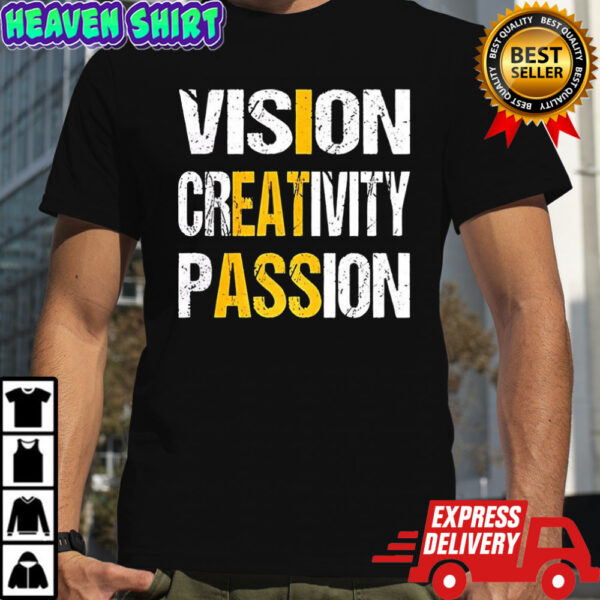 Experience the power of Vision creativity passion letter shirt and make a bold statement wherever you go. Stand out from the crowd, be the trendsetter, and let your attire reflect the depth of your imagination. Elevate your style game with a shirt that not only looks good but also tells a story. Embrace the fusion of art and fashion, and let your outfit be the conversation starter. Don’t just wear a shirt; wear your creativity on your sleeve. So, why wait? Add this unique piece to your wardrobe today and step into a world where passion meets fashion. Let your vision shine through every stitch, every pattern, and every letter.